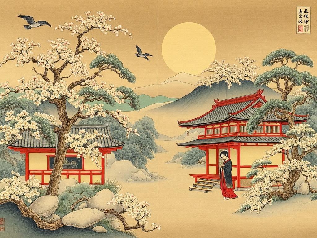 Финальный штрих — баланс между цветом и белым пространством ткани. В конечном счёте бумага на шёлке — не просто фон, а равноправный соучастник. Белый, который достигается за счёт правильной подготовки и использования гофуна, становится элементом ритма картины: он звучит так же ясно, как и краски, и позволяет зрителю «дышать» в изображении.