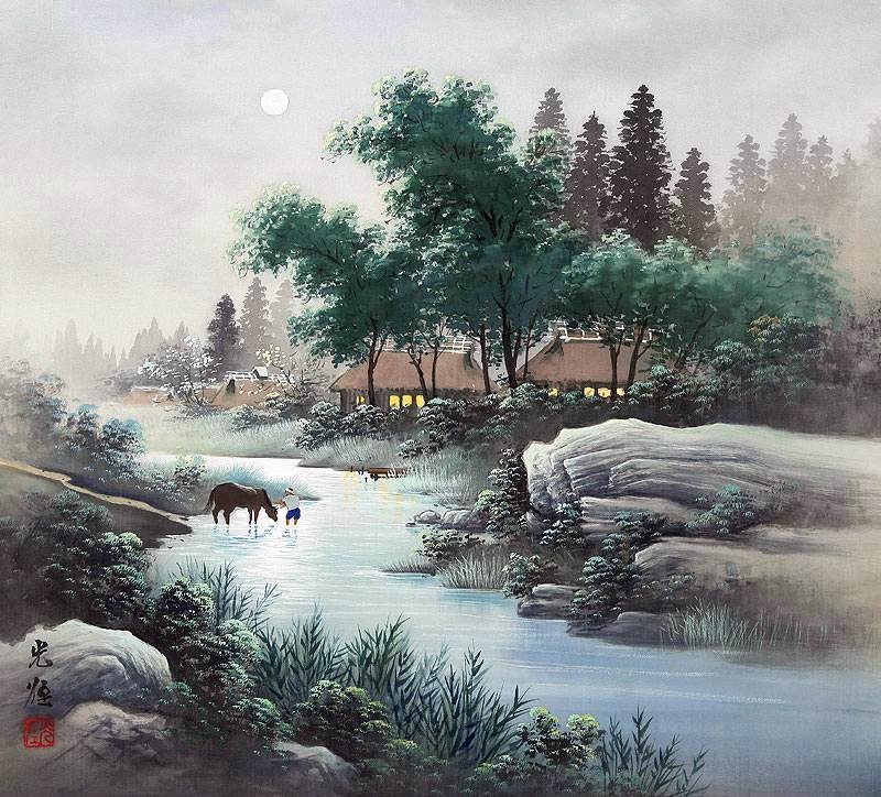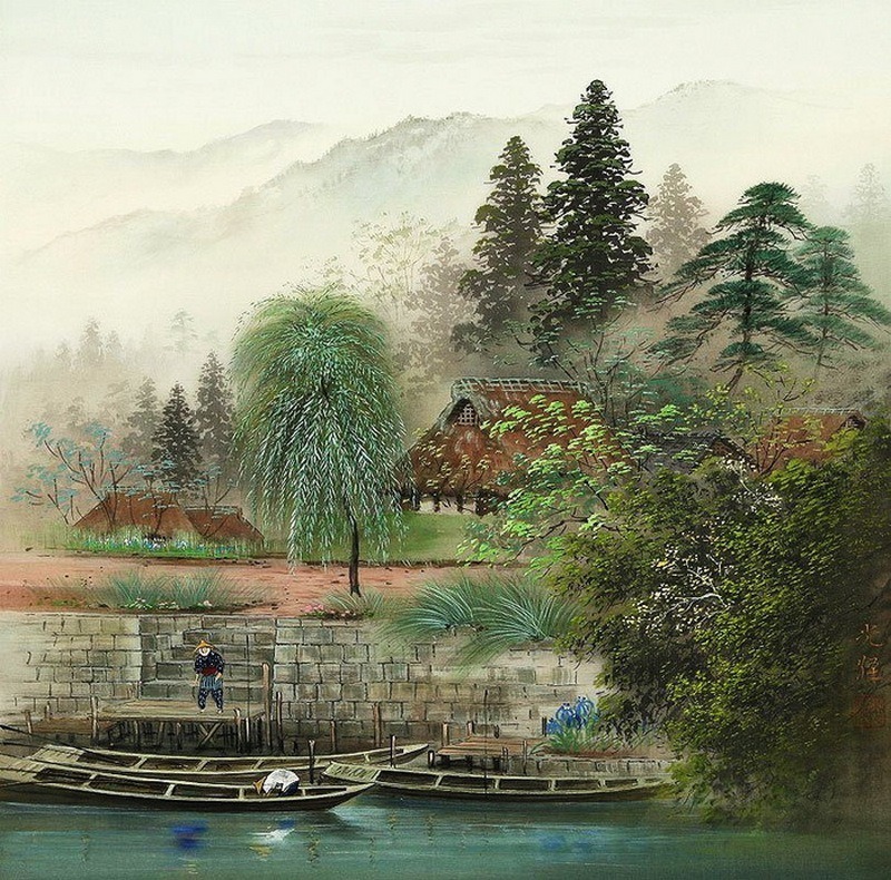 Коукеи Кодзима (小島光径) — современный японский художник, который создает свои работы на шелке в стиле «сансуй». Умиротворяющие пейзажи выполнены в той характерной творческой манере, за которой однозначно стоит азиатский художник, тонко чувствующий, аккуратный, неспешный. Коукеи Кодзима (Koukei Kojima) тщательно взвешивает каждый штрих, каждый мазок, делая их идеальными, а цвета — нежными и приглушенными, словно они подернуты туманной дымкой свежего весеннего утра. И потому картины выглядят немного выцветшими, старинными, словно передаются из поколения в поколение уже много десятков лет и наследуют, кажется, японскую живопись тушью Суми-э.