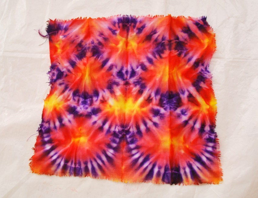 Кроме того, материал окрашивается. Батик снимается и фиксируется запеканием и поглаживанием.