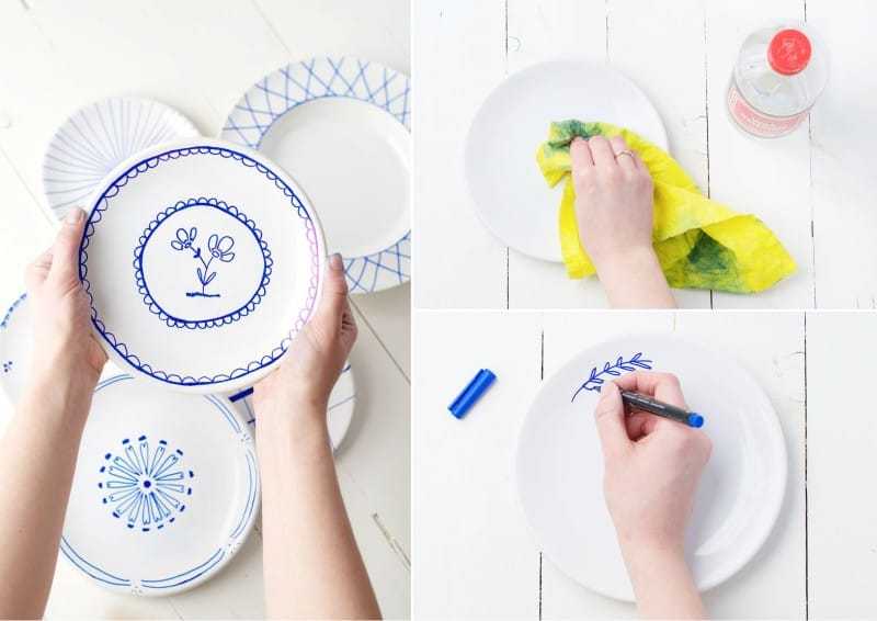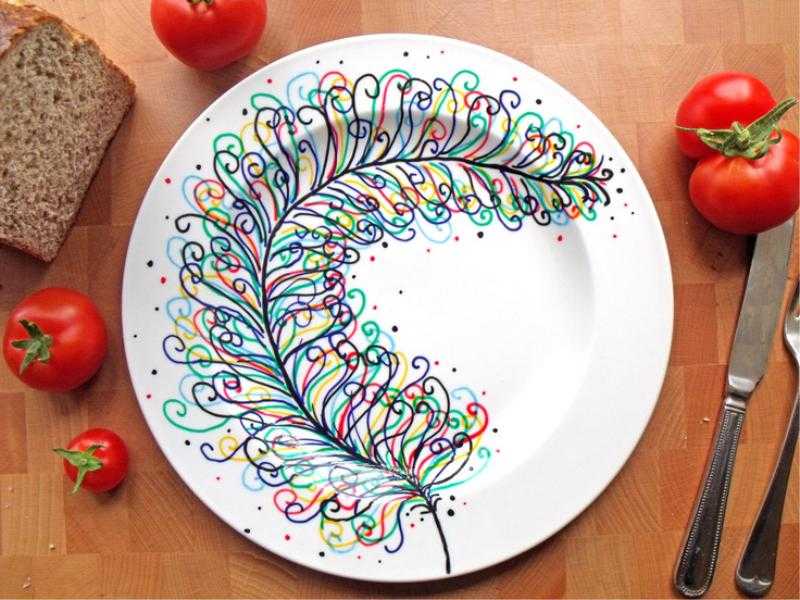 Рисование маркерами и фломастерами знакомо всем нам из детства. С помощью специальных фломастеров для росписи посуды своими руками вы сможете быстро и просто декорировать керамическую тарелку надписями, а также изобразить графичную и очень детализированную картинку. Примеры такого декора смотрим в следующей подборке фото.