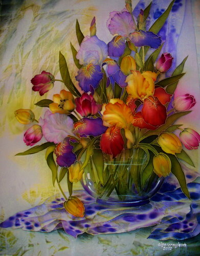 Розпись цветами на шелке
