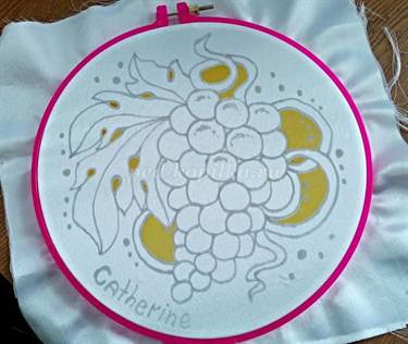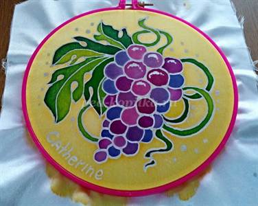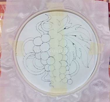 В начале простирнуть ткань с мылом, так как материал покрывают специальным веществом, которое будет мешать росписи. Влажную ткань надо натянуть на пяльцы и дать высохнуть.