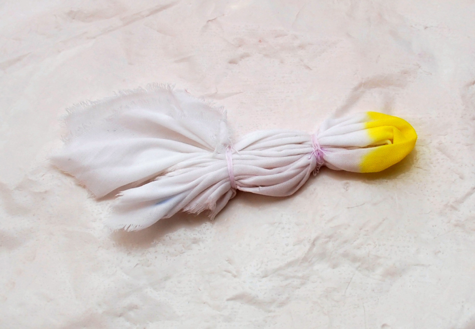 Шаг 3. После того, как ткань будет окрашена, промойте ее под проточной водой. Сначала завяжите узлы, затем развяжите их.