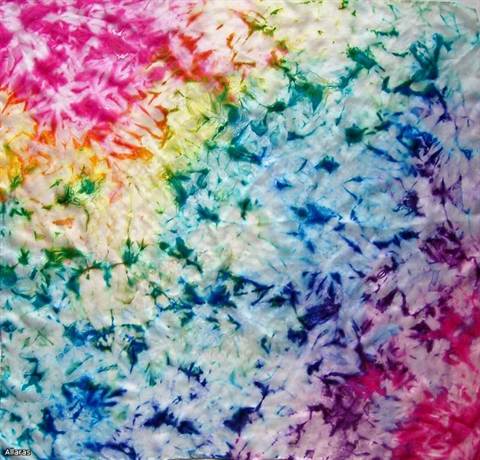 Этот вариант сильно разнится с предыдущими. Это уже не столько роспись, сколько скорее окрашивание ткани. Полотно складывают различными способами, перевязывают или сшивают ниткой и затем окрашивается краской.