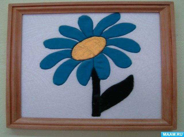 Для первой поделки не следует брать сложные рисунки. Начнём обучение технике с выполнения цветка на пенопласте. Такую картинку легко нарисует как взрослый, так и ребёнок. Листок с эскизом фиксируется на куске пенопласта кнопками.