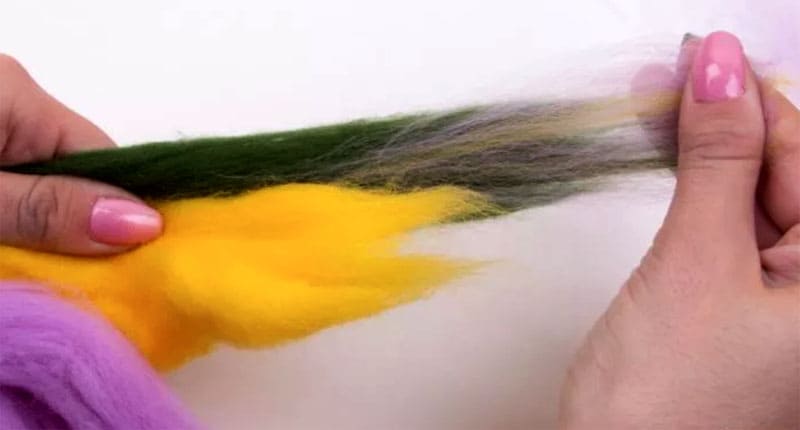 Чтобы смешать шерсть, нужно взять несколько оттенков и выщипывать одновременно все цвета