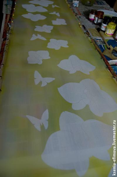 14)При нанесении нескольких слоев краски нужно давать каждому пятну высохнуть и только потом наносить следующее – ручная роспись по шелку не терпит спешки!