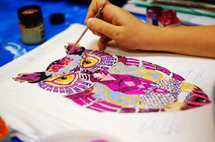 Ими создаются контуры, они используются в качестве барьера, чтобы не слились краски разных цветов. Линии цветных контурных красок, остаются, а прозрачных – смываются.