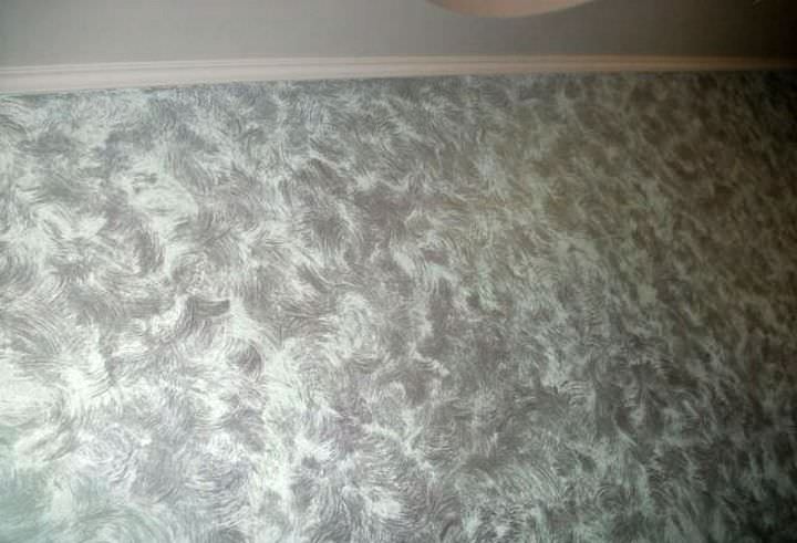 После этого губкой наносят финишный слой, выполняя хаотичные мазки непрерывными вращательными движениями. Через двадцать минут покрытие выравнивают пластиковым шпателем, распределяя краску в разных направлениях с легким нажимом.