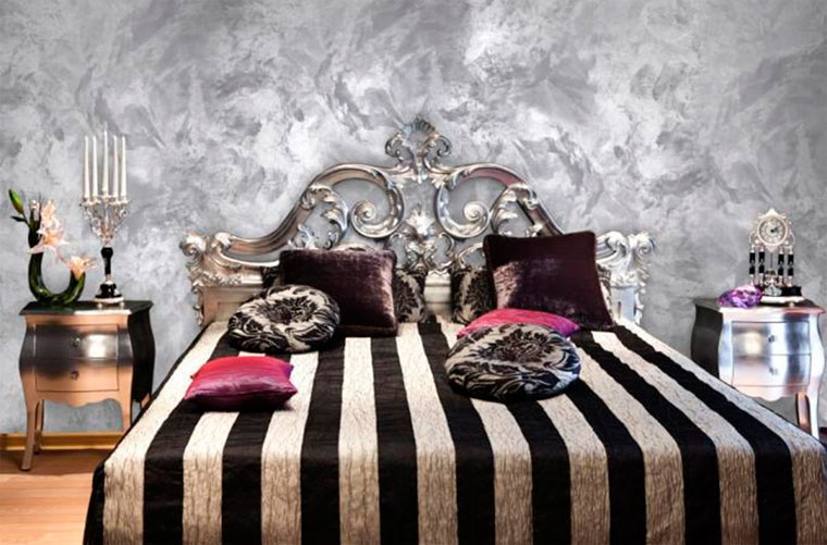 - Классический стиль. Чтобы сделать спальню роскошной, стены окрашивают такой красящей смесью полностью или же часто выделяют таким образом только прикроватную часть.