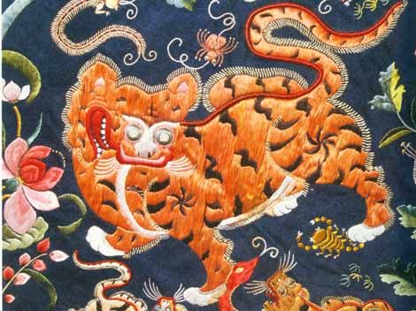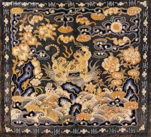 В древнем Китае, как и во многих других странах, существовало деление на сословия. Отличить эти сословия друг от друга помогала, в том числе вышивка на их одежде. Например, на вышивке воина принято изображать тигра, леопарда, льва, поскольку эти животные издревле считались символом воинской доблести.