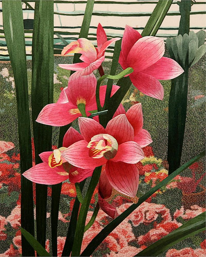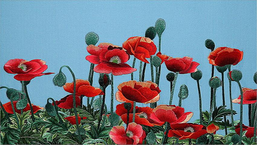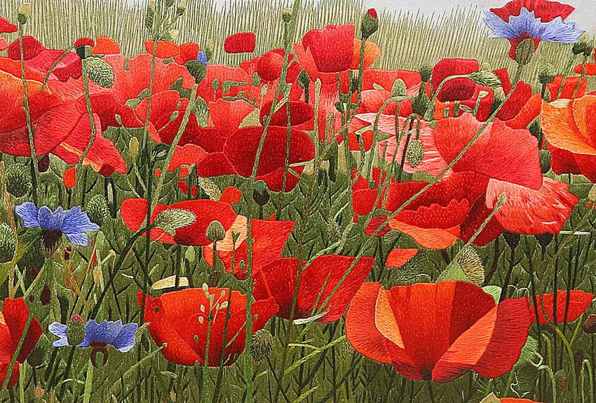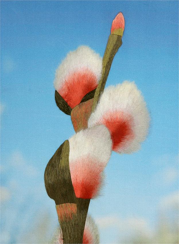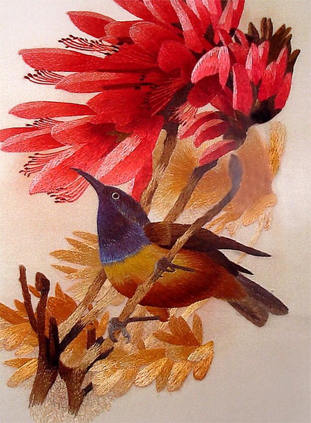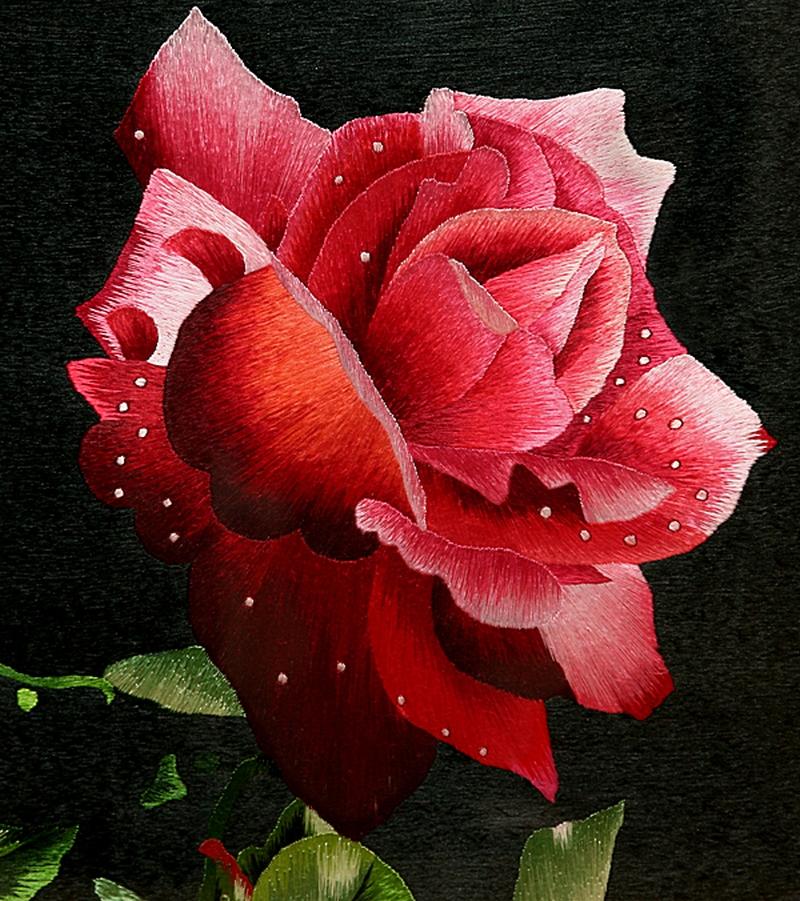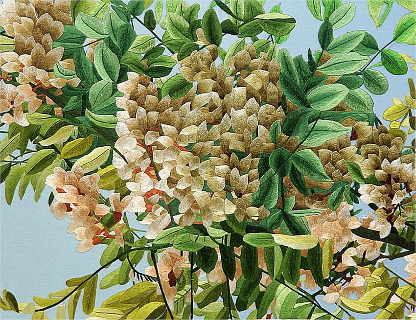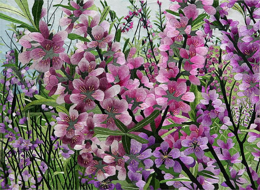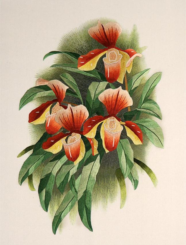 В 30-е годы появился стиль “Произвольный стежок”: эта техника вышивки предполагает использование стежков различной длины и направлений, а также наложение многочисленных слоев шелковых нитей различных цветовых оттенков, что позволяет добиться поразительного эффекта игры света, “трехмерности” и реалистичности вышитых картин.