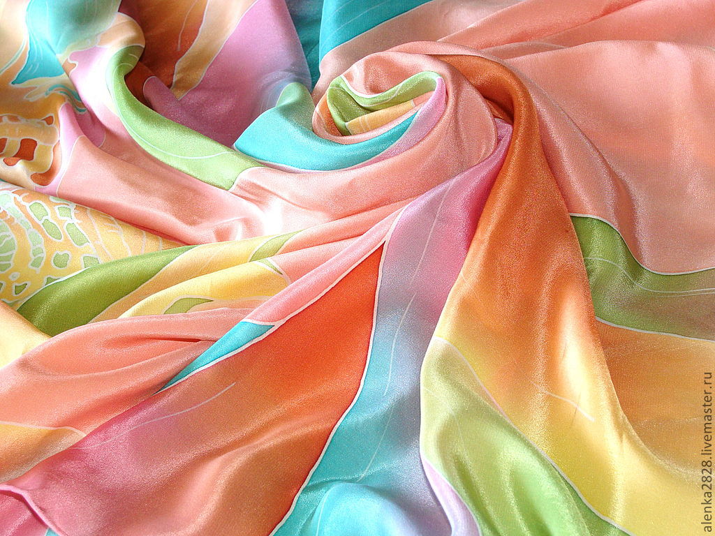 Шелковая ткань (шифон, крепдешин, креп-сатин и т.д.) В идеале для первой работы подобрать материю средней плотности. Краска на нее ложится ровнее всего.