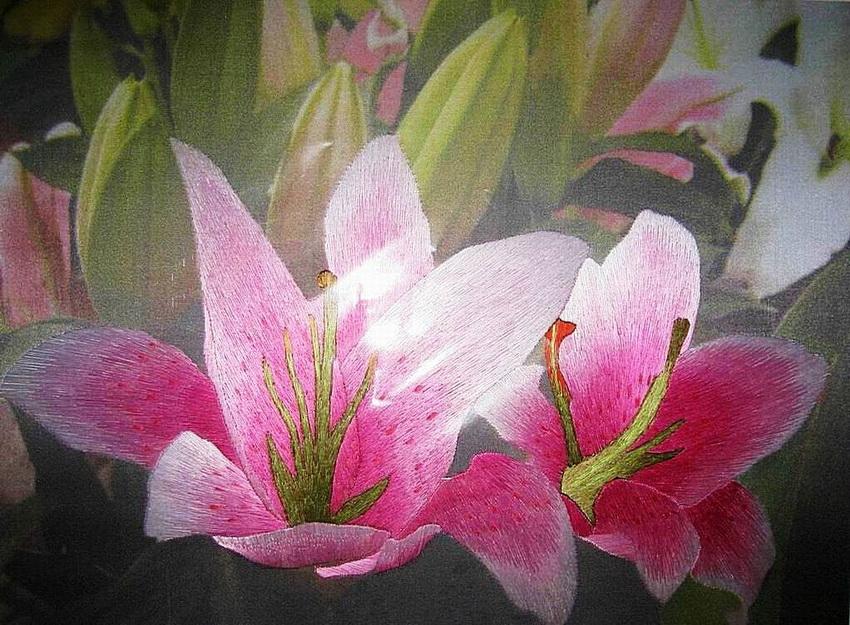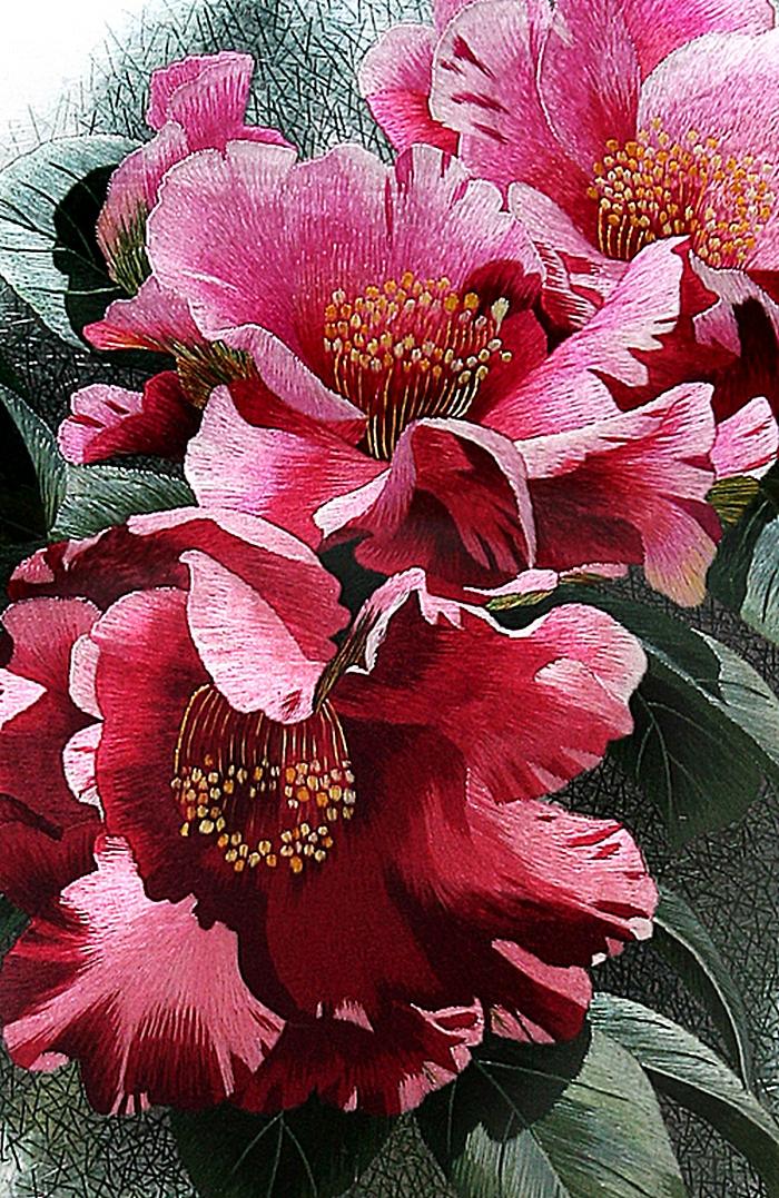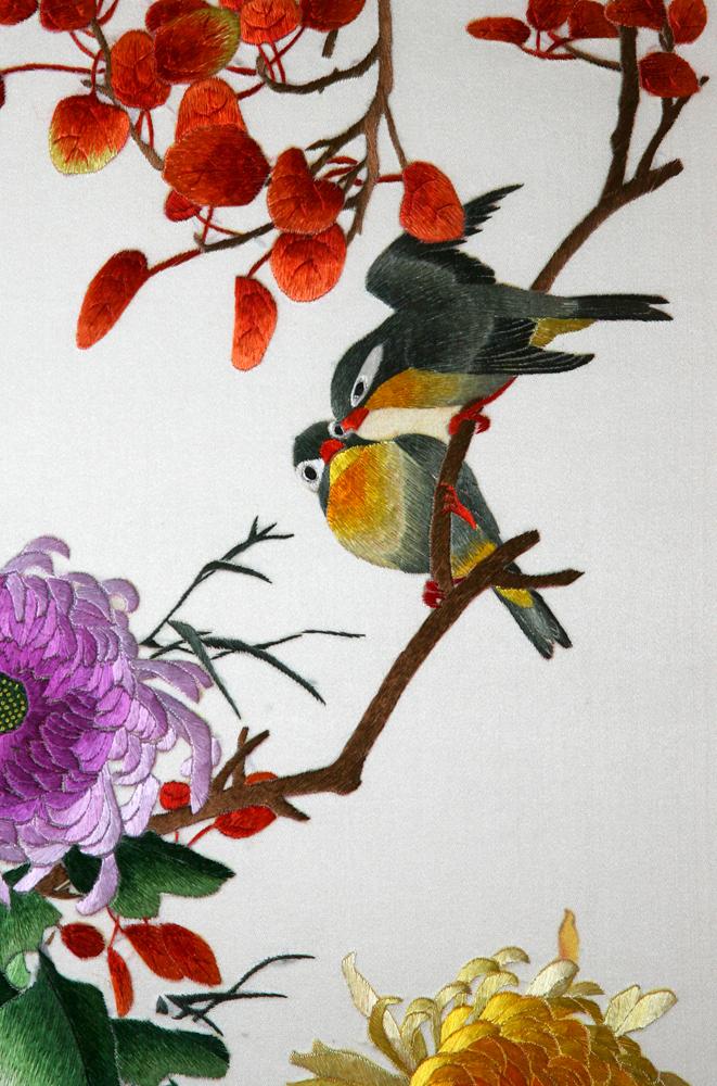 Традиции и опыт сохраняются и приумножаются в современных работах. Шелковая нить не выцветает и сохраняет первоначальный вид десятилетиями.Лучшие вышивки превосходят рисованные картины. Вышивка шелком по шелку может быть и двусторонней – вышитое изображение с двух сторон выглядитабсолютно одинаковой. Такие картины не вешают, а ставят на горизонтальную поверхность.