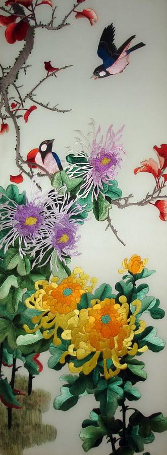 Эти шёлковые картины – тонкая, изящная авторская вышивка мастеров-вышивальщиц Китая: