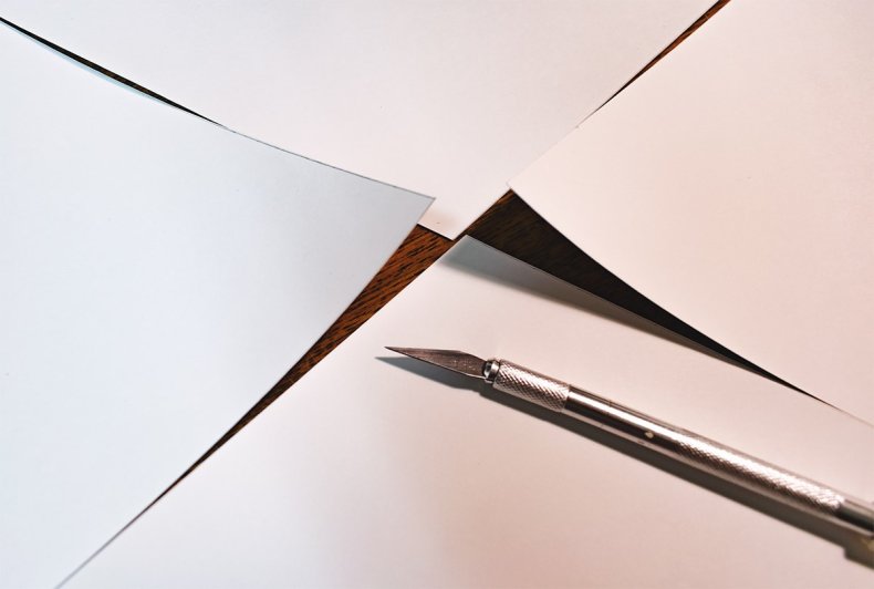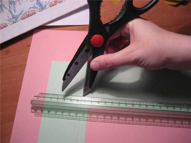 - Затем отрезать рамку: ее внешний край должен совпадать с внешним краем первого листа;
