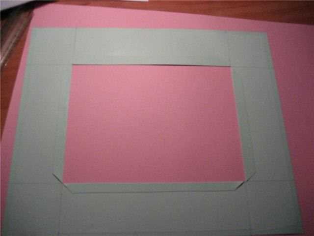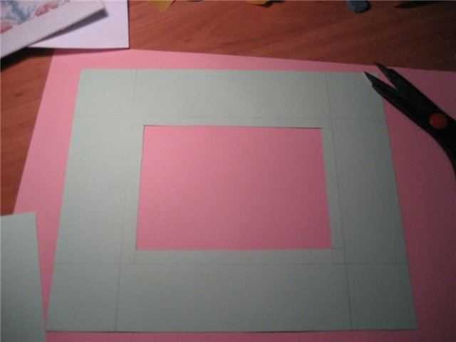 - В центре вырезаем окошко для картины ножом по заранее отмеренным параметрам.