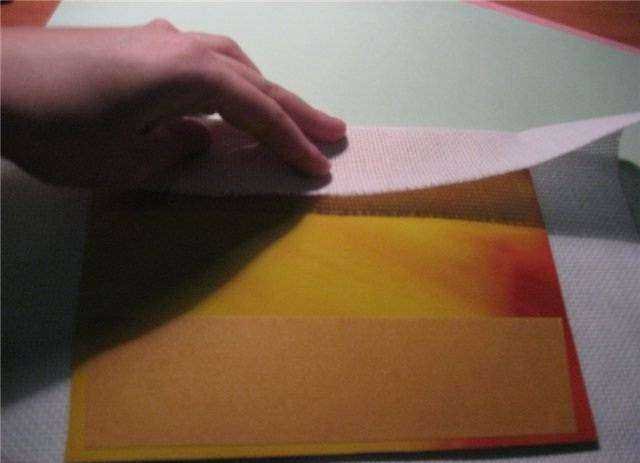- Повторите процесс с другими красками и кусочками ткани, создавая желаемый композиционный эффект.
