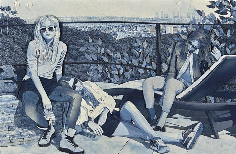 - Аккуратно приклейте фрагменты на холст или картон, следуя выбранной композиции.