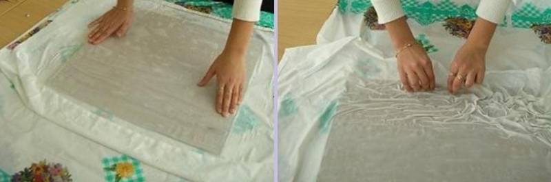 - Разглаживаем холст или хлопковую ткань, убирая складки.