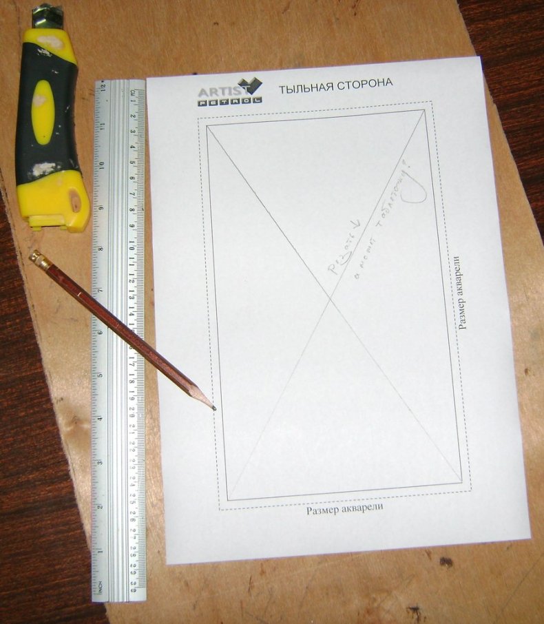 - На листе бумаги нужно разметить прямоугольник по размерам картины, которая туда будет помещена.
