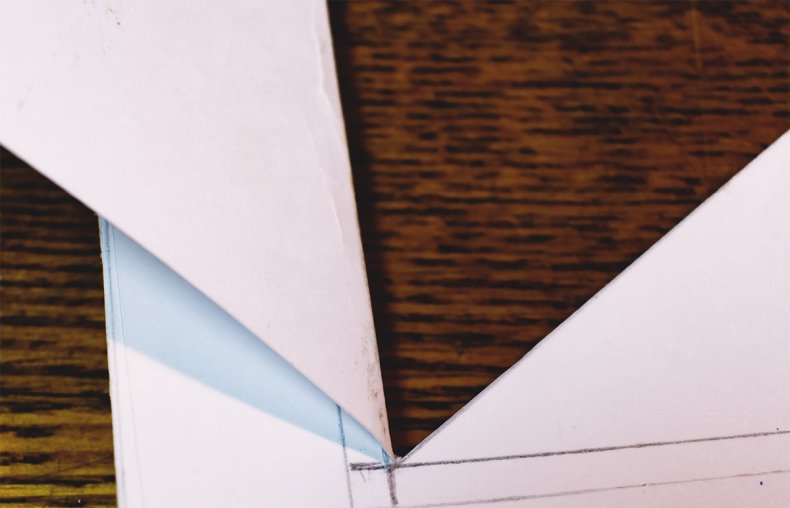 - Треугольники необходимо выгнуть по линиям подготовленной рамки, а затем еще раз согнуть вовнутрь.