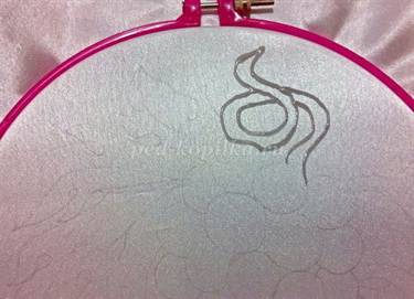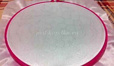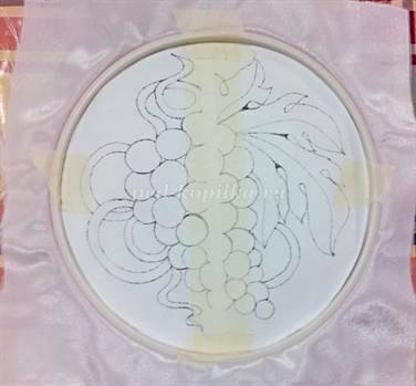 - Нанести рисунок на ткань. Это можно сделать с помощью копировальной бумаги. Существует еще один удобный способ. Для этого изготавливают деревянный каркас, на который сверху накладывают прозрачное стекло, а внутри размещают подсветку. Бумагу с рисунком закрепляют с обратной стороны ткани, накладывают подрамник на стекло и переводят просвечивающий рисунок на ткань карандашом или исчезающим маркером.