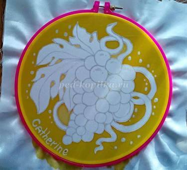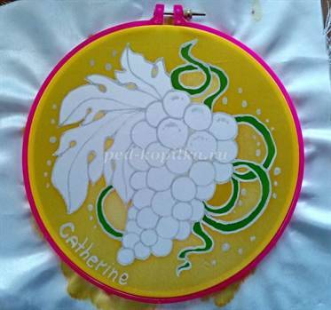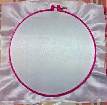 - Далее, влажную ткань натягиваем на пяльца и оставляем до полного высыхания;