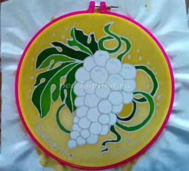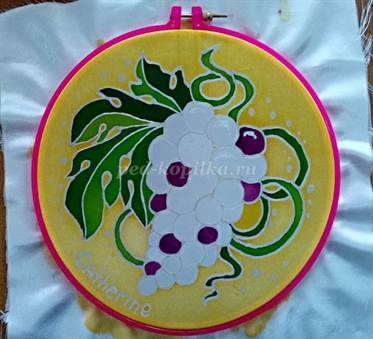 - Наше полотно готово! Теперь отрезаем лишнюю ткань и помещаем поделку в красивую раму. На фото представлено изделие, выполненное в технике рисования батик.