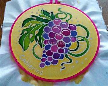 Ткань закрепляется на рамке из деревянных реек с помощью кнопок. Использовать можно дощечку, если объем работы небольшой. Картинки наносятся также различными способами. В зависимости от степени художественных навыков, можно использовать трафареты и шаблоны, или же разрисовать кистями вручную.