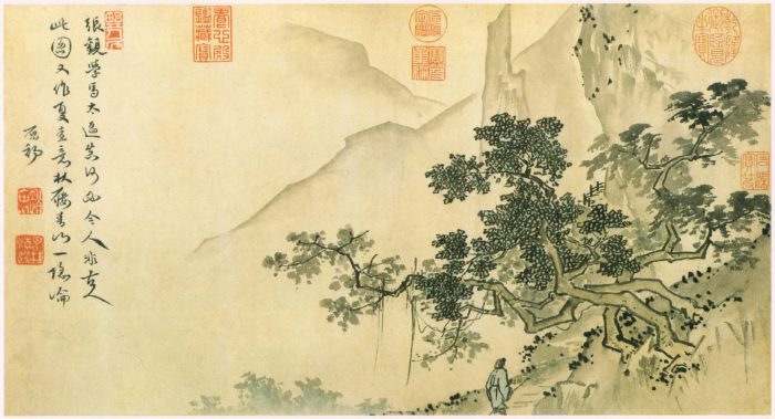 Китайские художники использовали полотна в виде свитков — удобно намотать ткань на бамбуковое основание и постепенно разворачивать по мере созерцания небольшой участок 20—30-метрового полотна. Но и прямоугольным форматом не пренебрегали — популярны были небольшие картинки-благопожелания к праздникам и вставки в ширмы и веера.