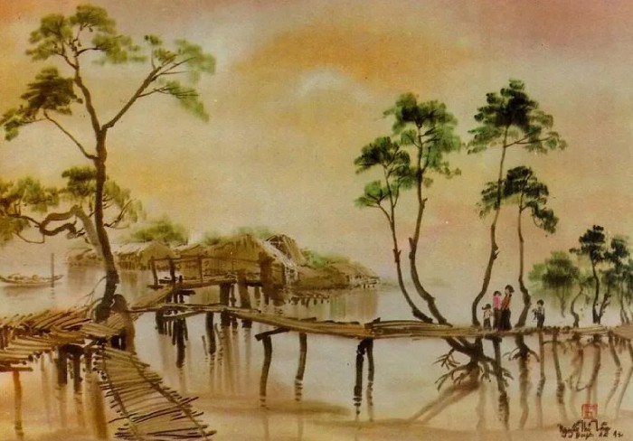 Японцы позаимствовали приемы шелковой живописи у китайцев около 300 г. Их ранние работы были монохромными, и только через тысячу лет японские художники начали использовать цвет. Отсюда четкость контуров, локальная насыщенность цветов и стройность композиции лучших образцов японской живописи по шелку.