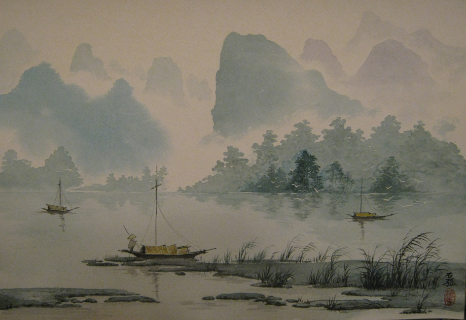 В отличие от европейских творений, на китайских полотнах всегда есть не закрашенные участки. Они тоже несут смысловую нагрузку, например служат фоном для плывущей лодки или представляют собой туманную облачность вокруг горной вершины.