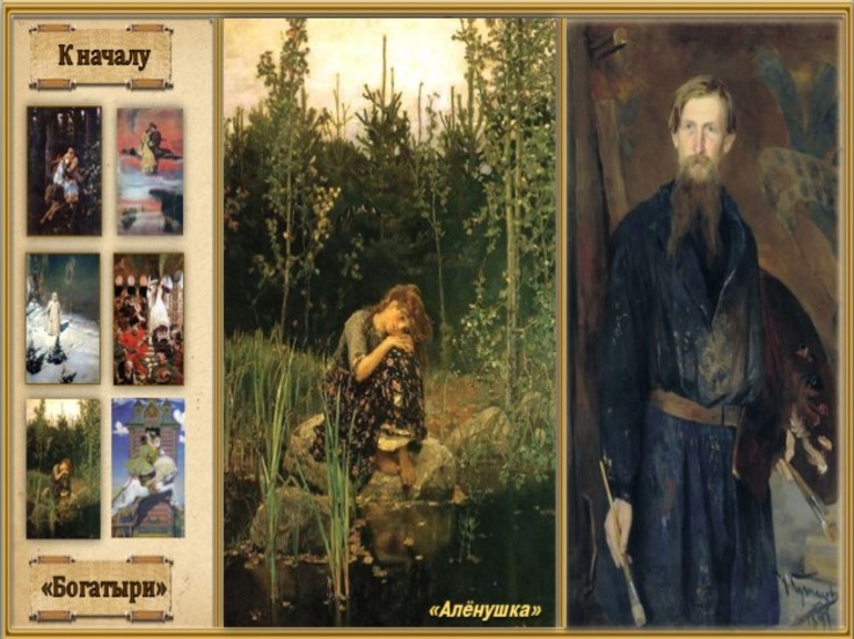 Летом 1880 года художник проживал в усадьбе Ахтырка, где часто работал над этюдами. Там и началась история картины Васнецова «Алёнушка». Он встретил девушку, которая поразила необычайной красотой и грустью, затаившейся в глазах. Так у Виктора Михайловича впервые возникла мысль о создании картины, на которой была бы изображена героиня русской сказки. Девушка, послужившая прототипом, выглядела очень одиноко и казалась воплощением исконно русской печали.