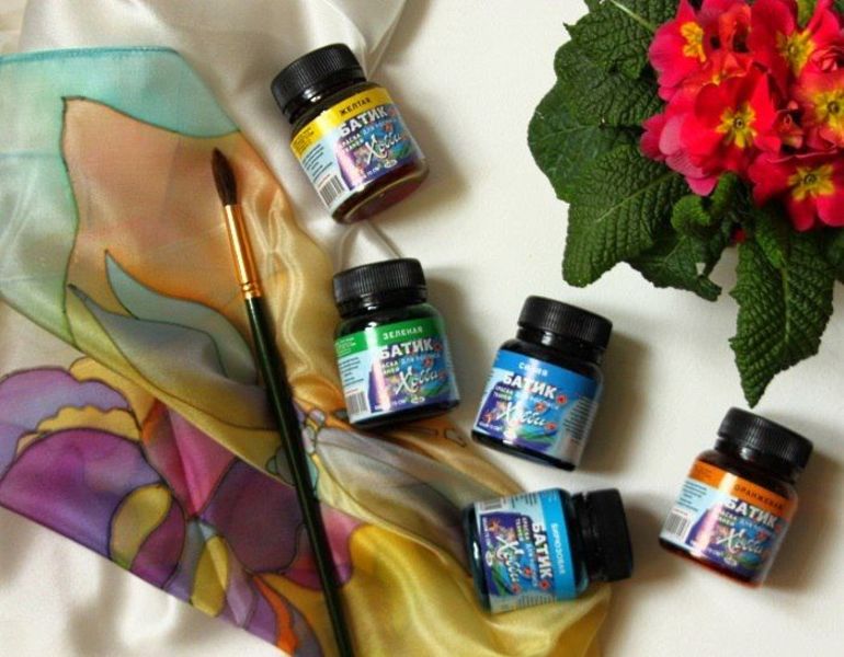 Краски изготавливают на основе акрила или воды, а закреплять их можно утюгом или паром. А в качестве резервирующего состава выступает воск или смесь из бензина и латекса.